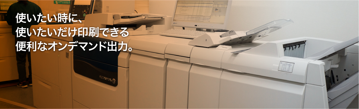 飲食店で使用する期間限定(季節モノ)のメニューやPOP、ショップで使用するポスター、販売促進用リーフレットやフライヤーなど、 Illustrator・Photoshopなどの版下データからフルカラーオンデマンド出力。小部数ニーズに対してスピード&コストの両方で抜群の効果を発揮します。